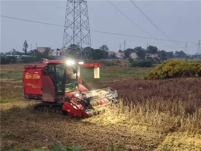 廣袤田野間,又是一年秋收時。近日,在安慶經開區老峰鎮農業村的連片田疇中,大豆陸續成熟,迎來采收季節。放眼望去,金黃的豆葉迎風搖曳,豆稈上豆莢密實、籽粒飽滿,三臺聯合收割機正開足馬力,在田間往返穿梭。伴隨著機械轟鳴,收割、脫粒、裝車等環節一氣呵成,種植戶們的臉上洋溢著喜悅,共同勾勒出一幅大豆秋收的動人畫卷。