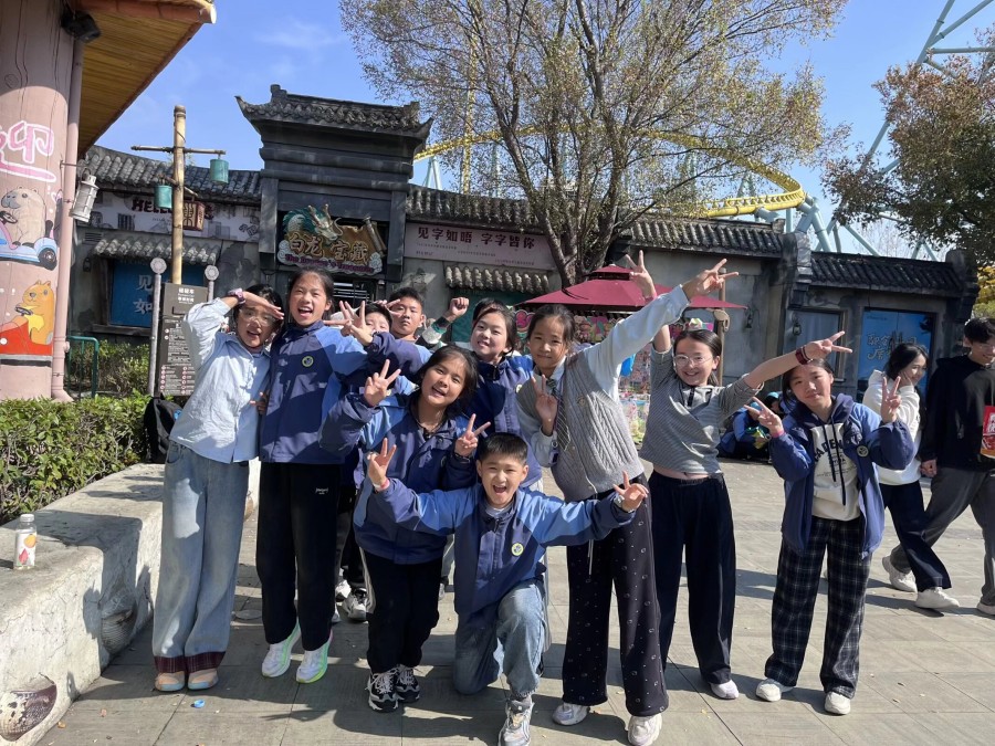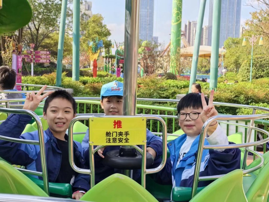 剛入園,色彩斑斕的游樂設施便吸引了同學們的目光,研學首段自由活動時間里,大家化身“快樂探險家”,盡情解鎖童趣時光。旋轉木馬上,精致的木馬隨著輕快旋律緩緩轉動,同學們揚起笑臉,在光影交錯中感受童話般的浪漫;空中飛椅啟動后,座椅隨轉盤緩緩升空,風聲在耳邊呼嘯,腳下樂園風光盡收眼底,大家在失重與平衡的交替中歡呼雀躍。輕松愉快的自由活動,不僅讓同學們迅速融入研學氛圍,更在玩樂中悄悄鋪墊了對“運動”“平衡”等物理現象的直觀感知。