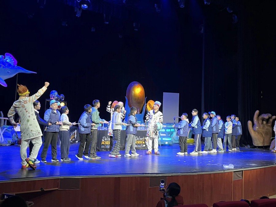 隨后,研學之旅的核心環節“艾博士科學奇幻秀”正式登場,趣味實驗讓抽象科學原理“活”了起來。燃燒的面粉表演中,奇妙現象引發全場好奇,大家紛紛舉手追問科學奧秘;馬德堡半球實驗前,同學們分組發力拉扯銅半球,卻始終無法將其分開,直觀感受到大氣壓力的神奇力量;液氮蘑菇云實驗更是震撼人心,白色“蘑菇云”騰空而起的瞬間,液氮氣化的巨大能量讓同學們深刻體會到科學的魅力。整場秀互動熱烈,科學探索的種子在童心中悄然萌芽。