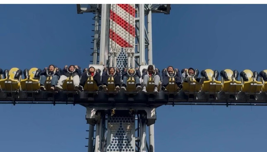 接下來,樂園游樂設施繼續變身“移動課堂”,讓知識在玩樂中自然滲透。大擺錘的瞬間失重與超重,讓課本上的加速度知識有了真實觸感;空中騎兵運轉時的優雅軌跡,生動詮釋了力與運動的關系;隨著茶山飛渠的游船俯沖而下,晶瑩的水花撲面而來,同學們拉緊扶手、笑意飛揚,瞬間的失重感讓學生沉浸式體驗到了穿梭山水的刺激與奇妙。