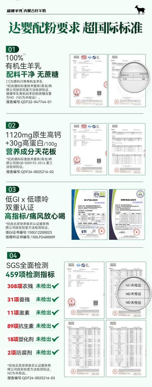 在產品研發與生產環節,盛健羊乳堅守“有機、天然、優質”的核心理念,采用先進的加工工藝,最大程度保留羊乳中的天然營養成分。其產品不僅羊乳蛋白含量扎實,鈣含量也十分充足,且配料表簡潔純粹,無多余添加,既契合了現代消費者對健康飲食的需求,更精準匹配了健身人群、母嬰群體等對營養密度的高要求。產品沖泡便捷,溫水即可快速溶解,無膻味殘留,純純的羊乳香贏得了廣大消費者的青睞,成為日常營養補充與特定場景飲食搭配的優選。