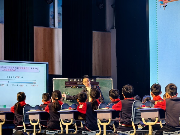 一堂標(biāo)桿課例的誕生,既是執(zhí)教者個人教學(xué)功底與創(chuàng)新思維的集中體現(xiàn),也是集團扎實開展教研活動、深耕課堂教學(xué)的生動縮影。從確定課題開始,集團兩校區(qū)數(shù)學(xué)教研組擰成一股繩,共同提供了堅實的智慧支持,在研討中碰撞思想,為丁老師優(yōu)化教學(xué)設(shè)計提供了寶貴建議。最終,憑借團隊的協(xié)作力量,打造出一節(jié)充分體現(xiàn)“教—學(xué)—評”一致性的思維型課堂,展現(xiàn)了團隊精湛的業(yè)務(wù)水平和嚴(yán)謹(jǐn)?shù)慕萄袘B(tài)度。