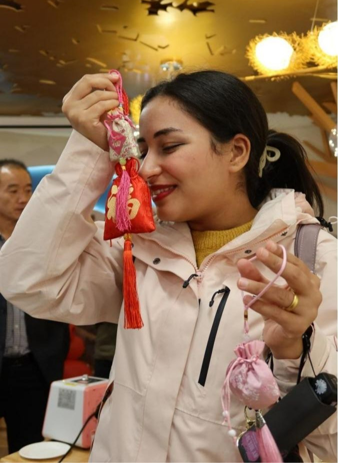 俄羅斯網(wǎng)紅博主展示自己制作的中草藥香囊 攝影 趙博