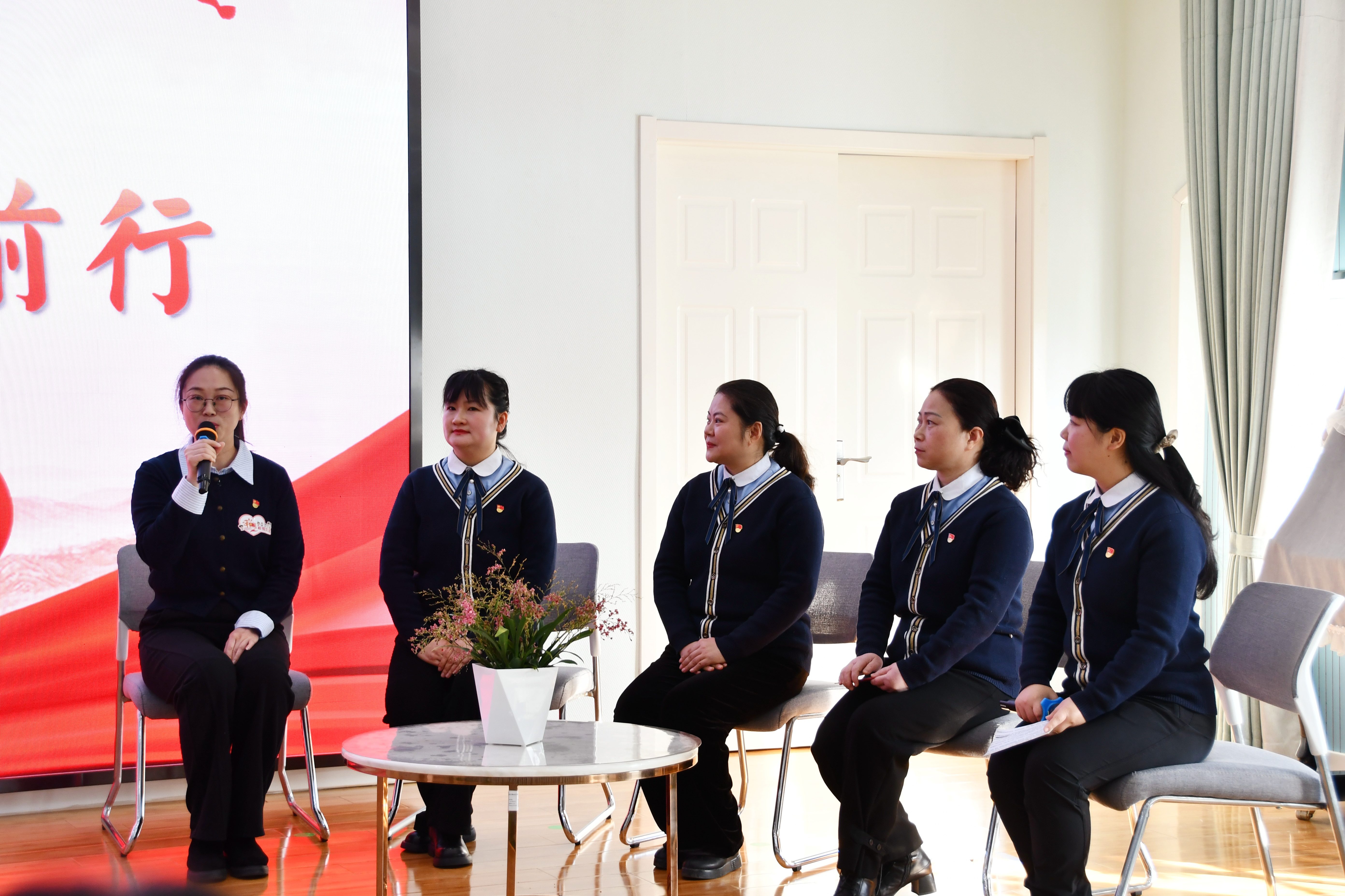 在“青年黨員說·薪火傳初心”環節,黃筱禹、陶園園、陳京京三位優秀青年黨員教師,立足一線實踐,圍繞“黨建領航青春建功”主題,分享了她們如何在“和悅”黨建文化的浸潤下,將黨性修養內化為“優善慈愛”的教育日常。團支部書記黃筱禹講述了青年教師在“和悅黨建”引領下的成長實踐;陶園園老師分享了從城市到鄉村的教育融入,并特別講述了赴滬跟崗學習的經歷與心得,以及其后在鄉土教育場景下的創新探索;陳京京老師介紹了黨建與STEAM教育、家園社聯動深度融合的生動案例。