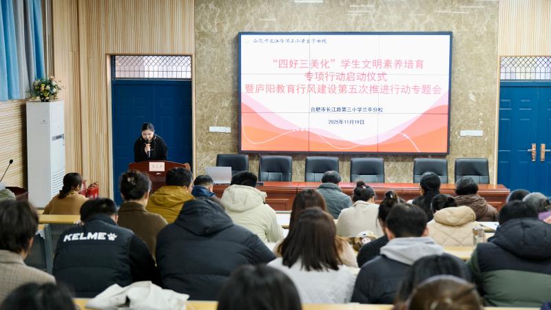 為深入落實(shí)廬陽(yáng)區(qū)教體局關(guān)于學(xué)生文明素養(yǎng)培育的工作部署,持續(xù)深化教育行風(fēng)建設(shè),11月19日,合肥市長(zhǎng)江路第三小學(xué)蘭亭分校召開(kāi)“四好三美化”學(xué)生文明素養(yǎng)培育專項(xiàng)行動(dòng)......
